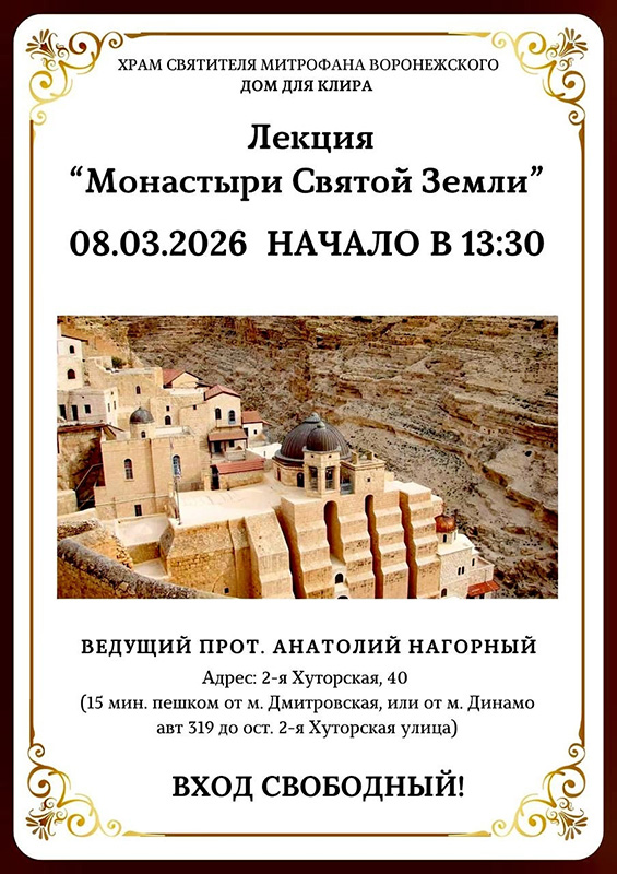 Лекция «Монастыри Святой Земли»8 марта, 13.30